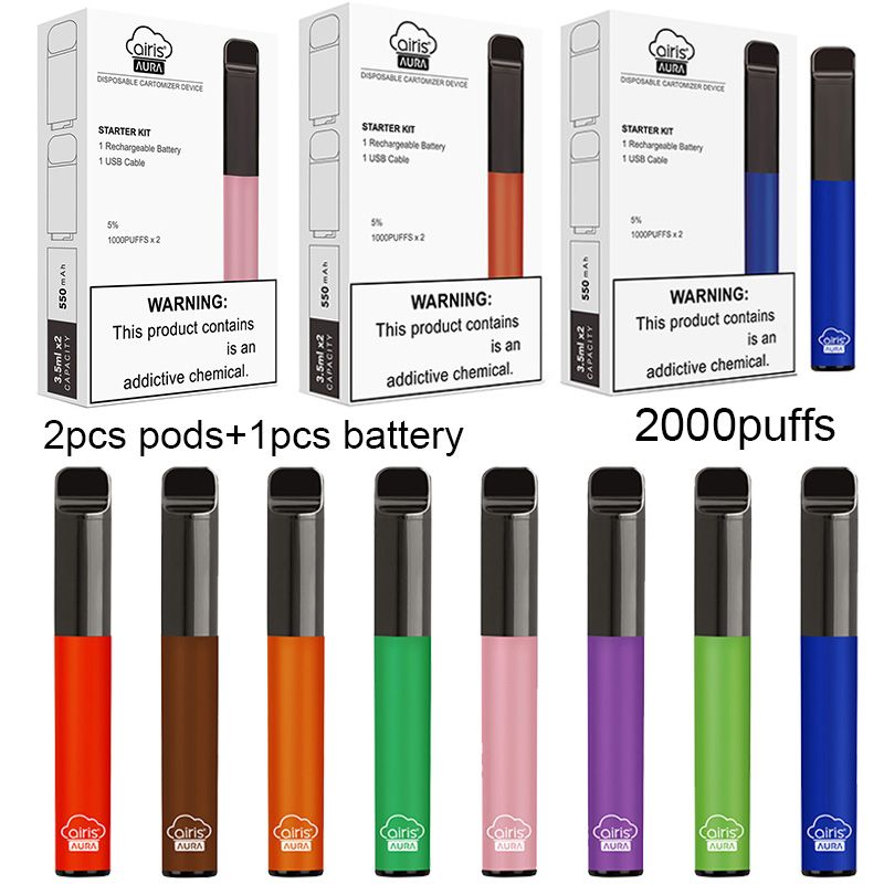 Airis Aura Disposable E Cigarettes Kits Empty Vape Pod Device Vapes Pens 550mah Battery Rechargeable 3 5ml 2 Original 100